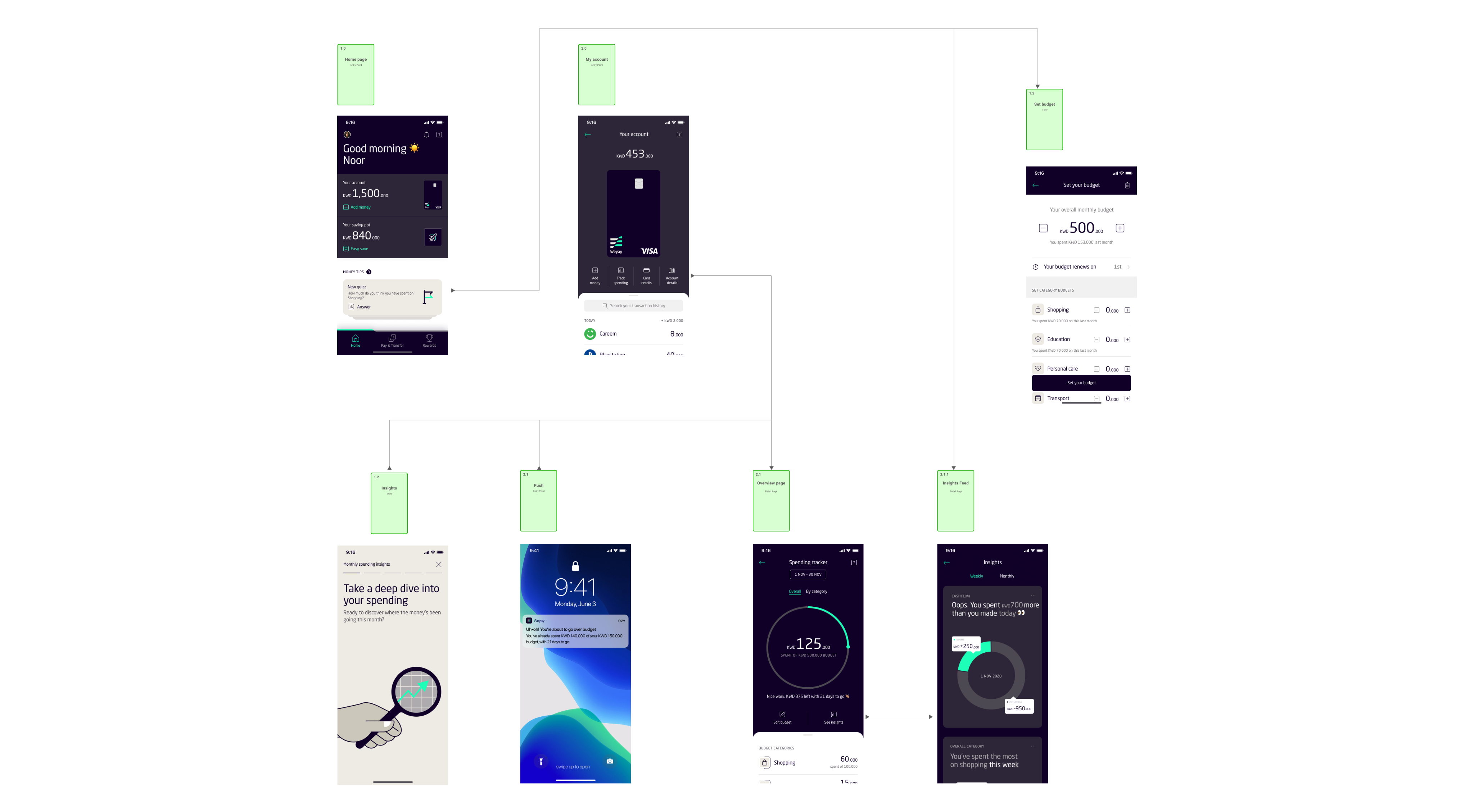 Each exploration focused on how these elements could work in tandem, creating a seamless flow where users could see where their money goes, set limits, and monitor outcomes without friction.